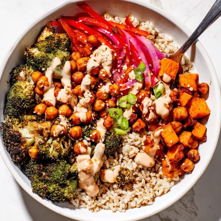 Pin It Vibrant grain bowls featuring bold globally inspired sauces like miso-butter and gochujang-maple paired with roasted vegetables and protein for a satisfying customizable meal.