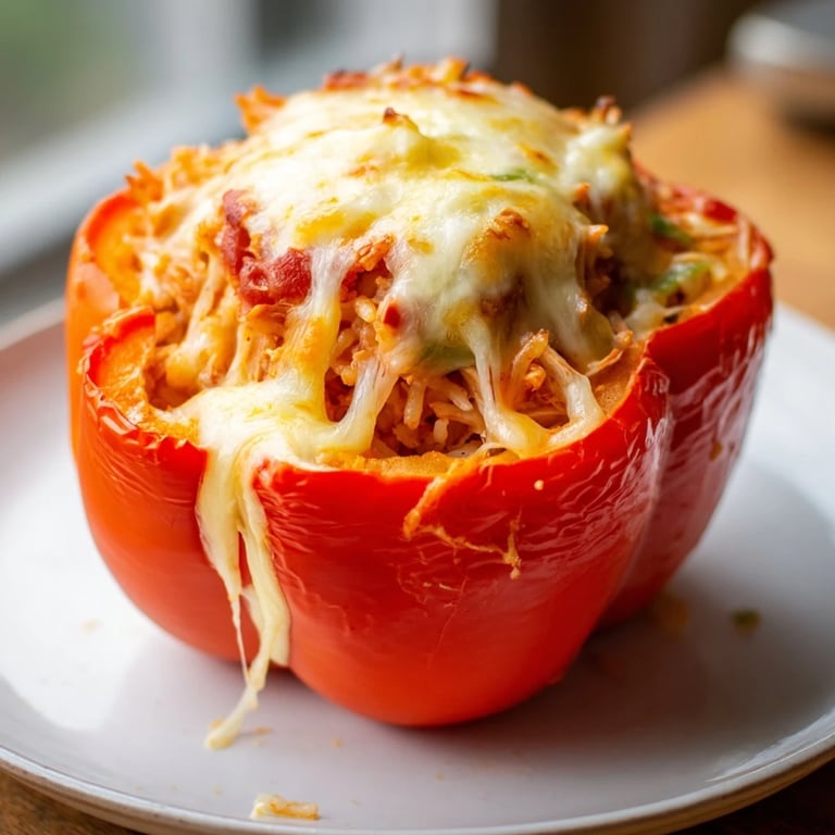 Pin It There's something magical about a stuffed pepper fresh from the oven, steam still rising from the melted cheese on top. I discovered this recipe on a Tuesday evening when I was staring into my fridge, trying to figure out what to do with a rotisserie chicken and some bell peppers that were slowly losing their shine. What started as a desperate attempt at dinner became something I now make at least twice a month, and honestly, my family has stopped asking what's for dinner on those nights because they already know.