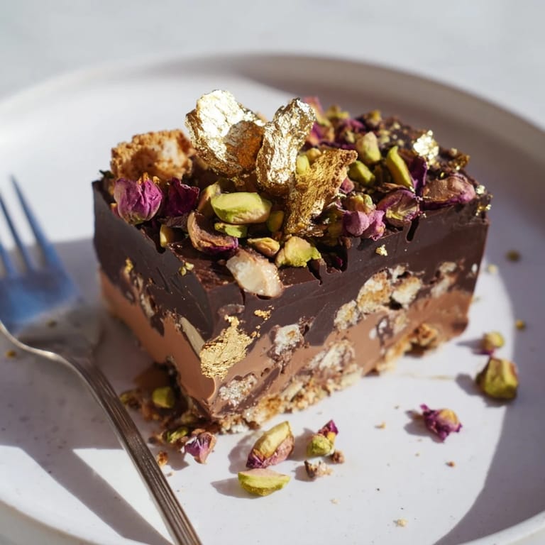 Inspired by Dubaiβs lavish dessert culture, I crafted this recipe to capture the extravagant feel of chocolate bars layered with nuts, caramel, and edible florals. It became the star of our celebrations, and its bold flavors always impress guests.