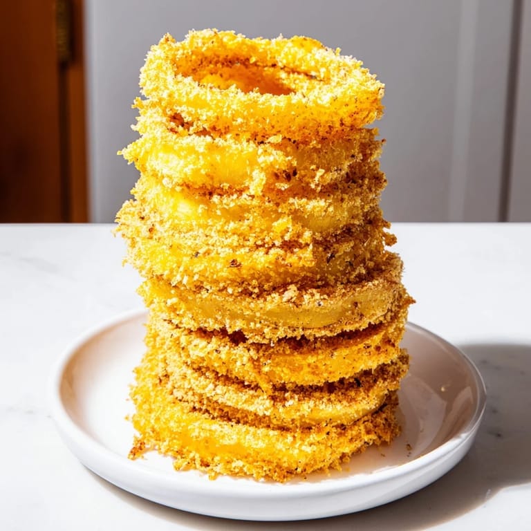 Pin It There's something about the smell of onions hitting hot oil that makes me pause and just breathe it in—that moment when you know something delicious is about to happen. My friend brought these towering stacks of golden onion rings to a summer potluck years ago, and I watched people actually forget about the main dishes. The crispy exterior, the tender sweet onion inside, the satisfying crunch that echoes when you bite down. I've been chasing that same magic ever since, and this recipe finally nailed it.