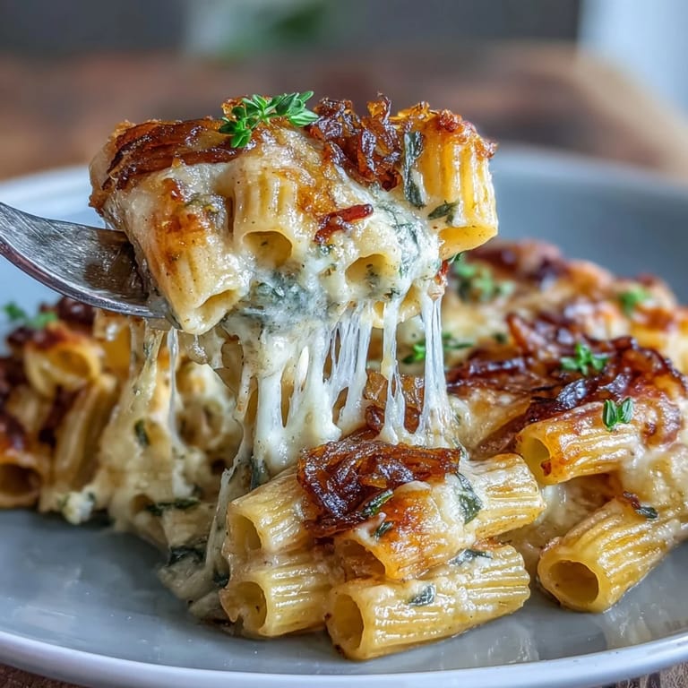 One rainy Wednesday, my friend Mara stopped by just as the dish was coming out of the oven. The scent of caramelized onions drew her into the kitchen before she even hung her umbrella, and we ended up eating straight from the baking dish, laughing over crispy cheese edges and the little crunch of burnt pasta bits no one admits to loving best.