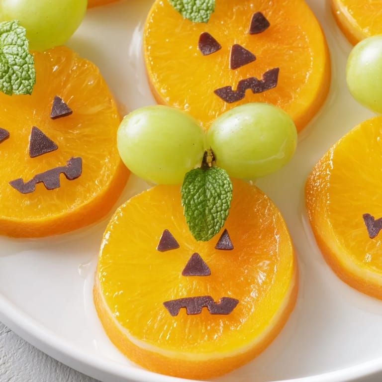 Mini chocolate chips or black sesame seeds gently pressed into orange slices mimic eyes and faces, adding festive details.