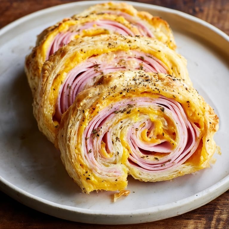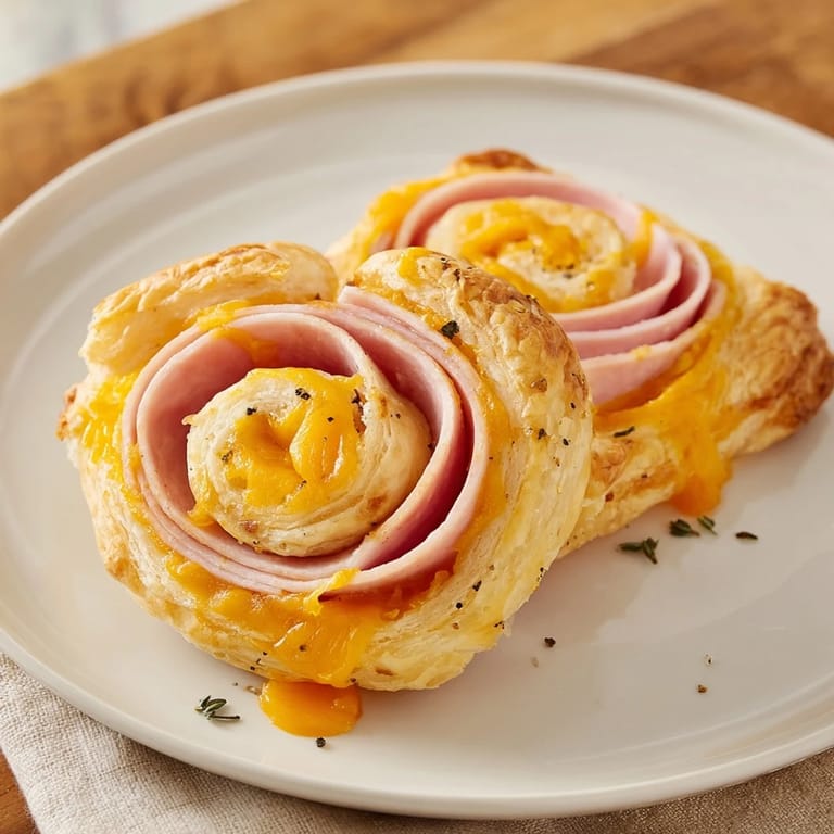 Pin It Flaky, golden pastry spirals filled with savory ham and melted cheese—perfect as an appetizer, snack, or party finger food.