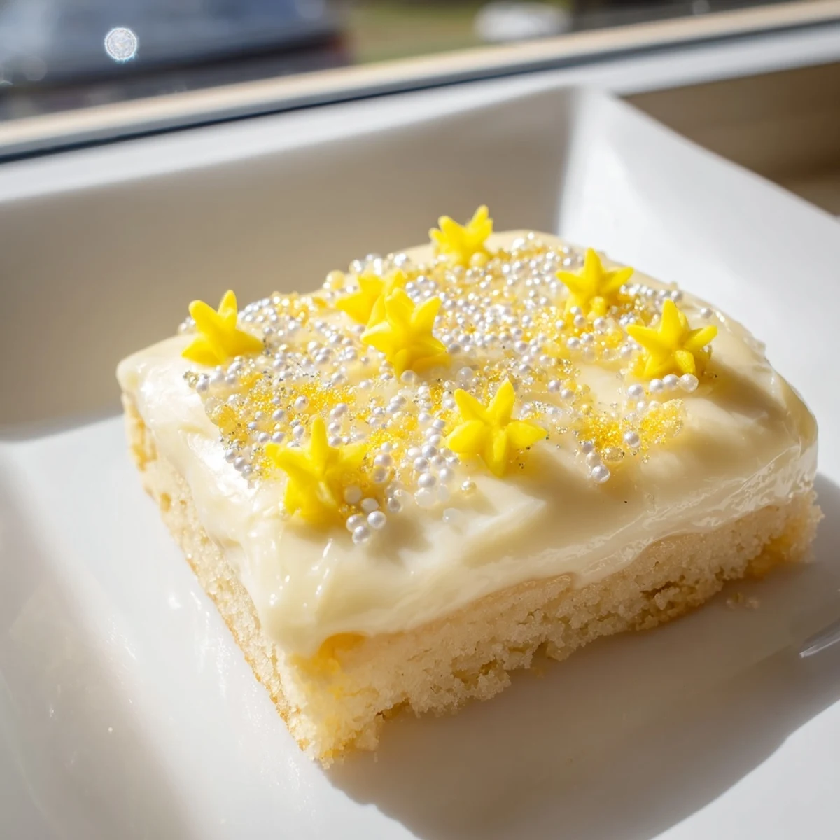 Pin It Creating these bars is a joyful experience, from mixing the soft dough to seeing the golden edges emerge from the oven. The frosting is luscious and fluffy, bringing the shortbread to life, while the whimsical stars on top add that final celebratory touch.