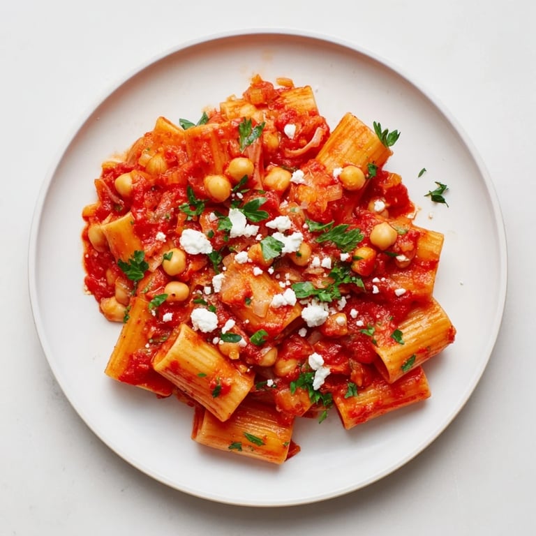 This dish combines tender pasta with chickpeas simmered in a fragrant harissa and tomato sauce. Aromatic spices like cumin and smoked paprika elevate the flavor, while lemon zest and fresh herbs add brightness. Cooked al dente, the pasta absorbs the spicy sauce, creating a satisfying balance of heat and freshness. Optional crumbled feta adds a creamy contrast. Ideal for a quick, flavorful meal infused with Mediterranean influences.